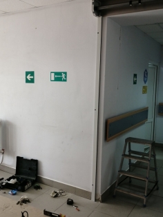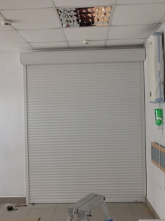 Рольставни для разделение зон в поликлинике, особенность обекта в том, что оба проема нуждались в подготовке, в проеме поменьше на стене была плитка до середины проема, т.е. не было плоскости, пришлось выводить плоскость фанерой и красить её, в втором проеме с одной стороны не было пристенка, пришлось заанкерить трубу к стене и покрасить, и уже на неё устанавливать ролету.