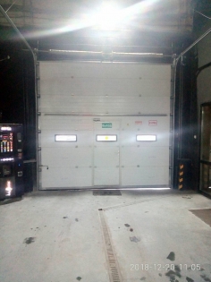 Для СТО заказывал секционные ворота с калиткой и окнами. В процессе монтажа появлись сложности из-за высокого потолка. Но бригада учла мои пожелания, сделали стандартный проем с помощью металлических тросов. Изделие держится хорошо, материал надежный. Устанавливали автоматику, для удобного использования.